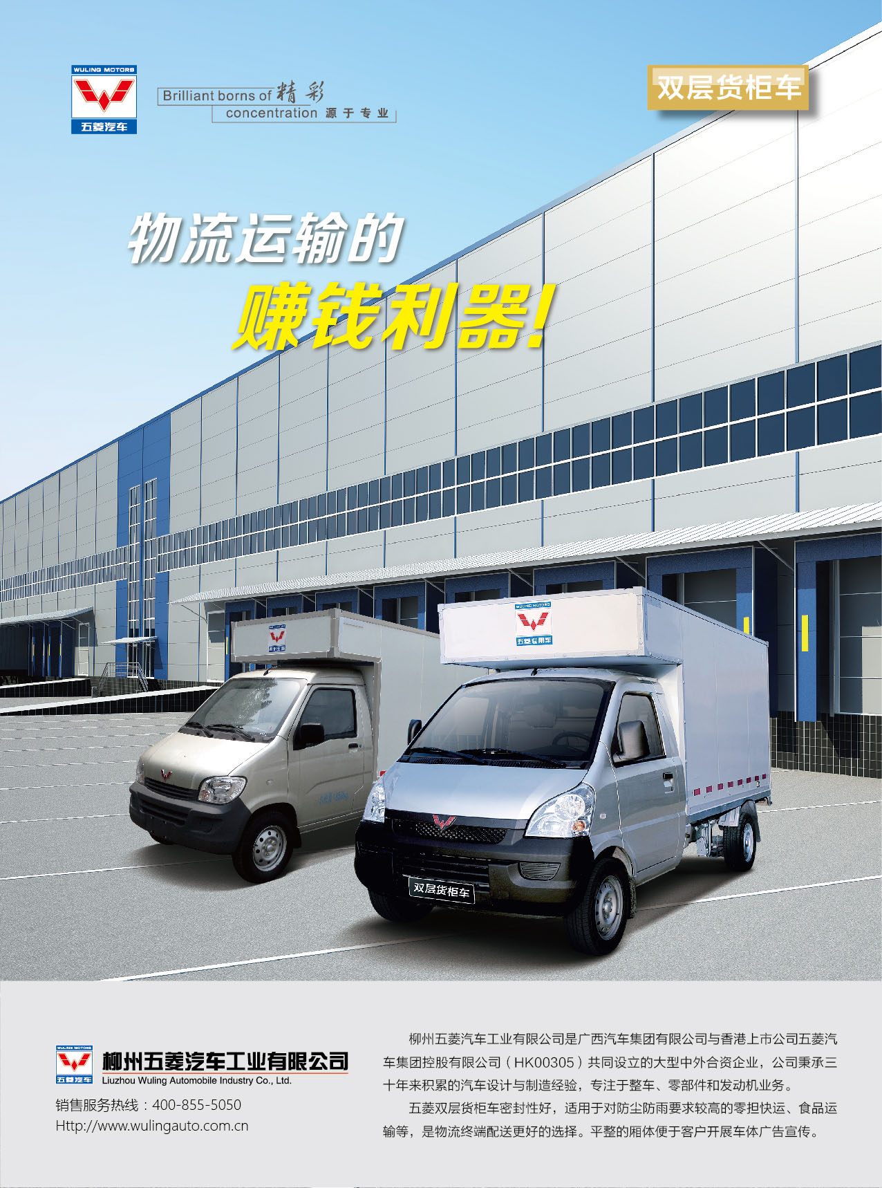 五菱雙層貨柜車(chē)密封性好,適用于對(duì)防塵防雨要求較高的零擔(dān)快運(yùn)、食品運(yùn)輸?shù)龋俏锪鹘K端配送更好的選擇。 平整的廂體便于客戶(hù)開(kāi)展車(chē)體廣告宣傳。